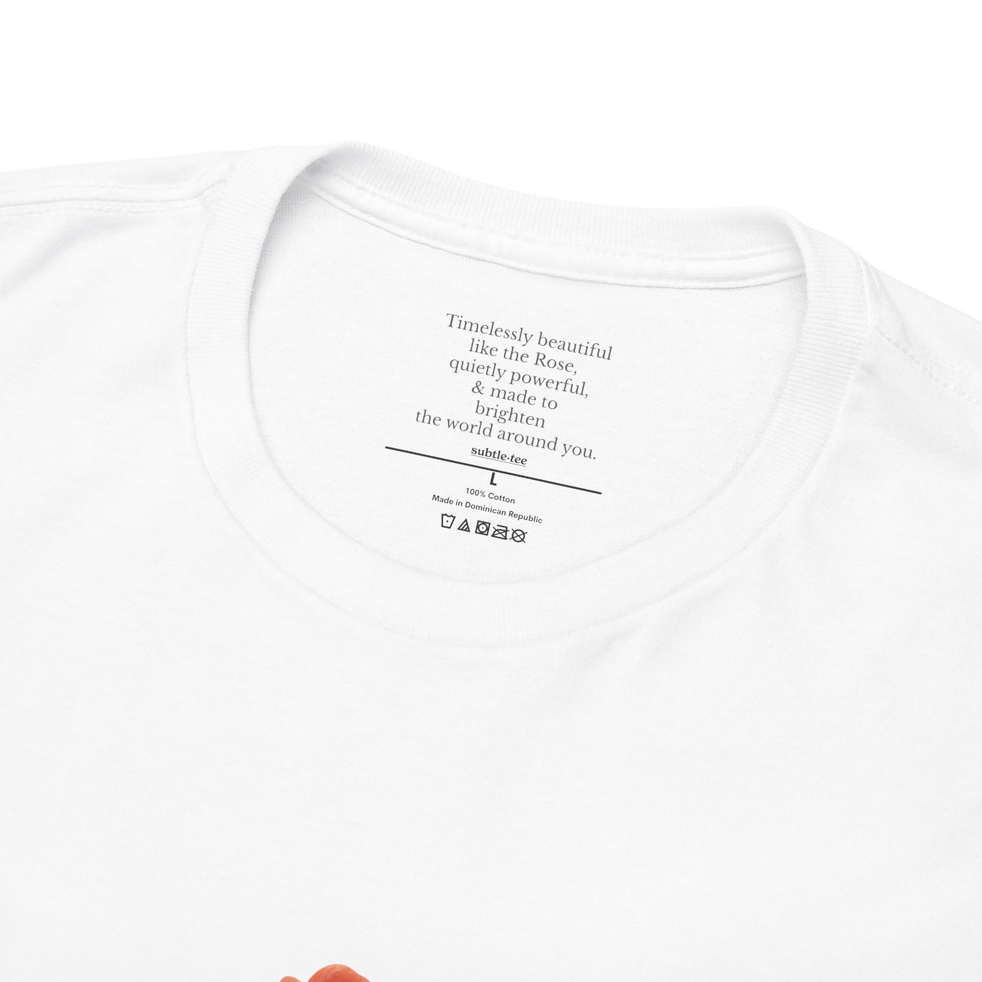 Inside the collar, a hidden affirmation reads: “Timelessly beautiful like the rose, quietly powerful & made to brighten the world around you.” A personal message kept close, offering quiet encouragement each time you wear it.